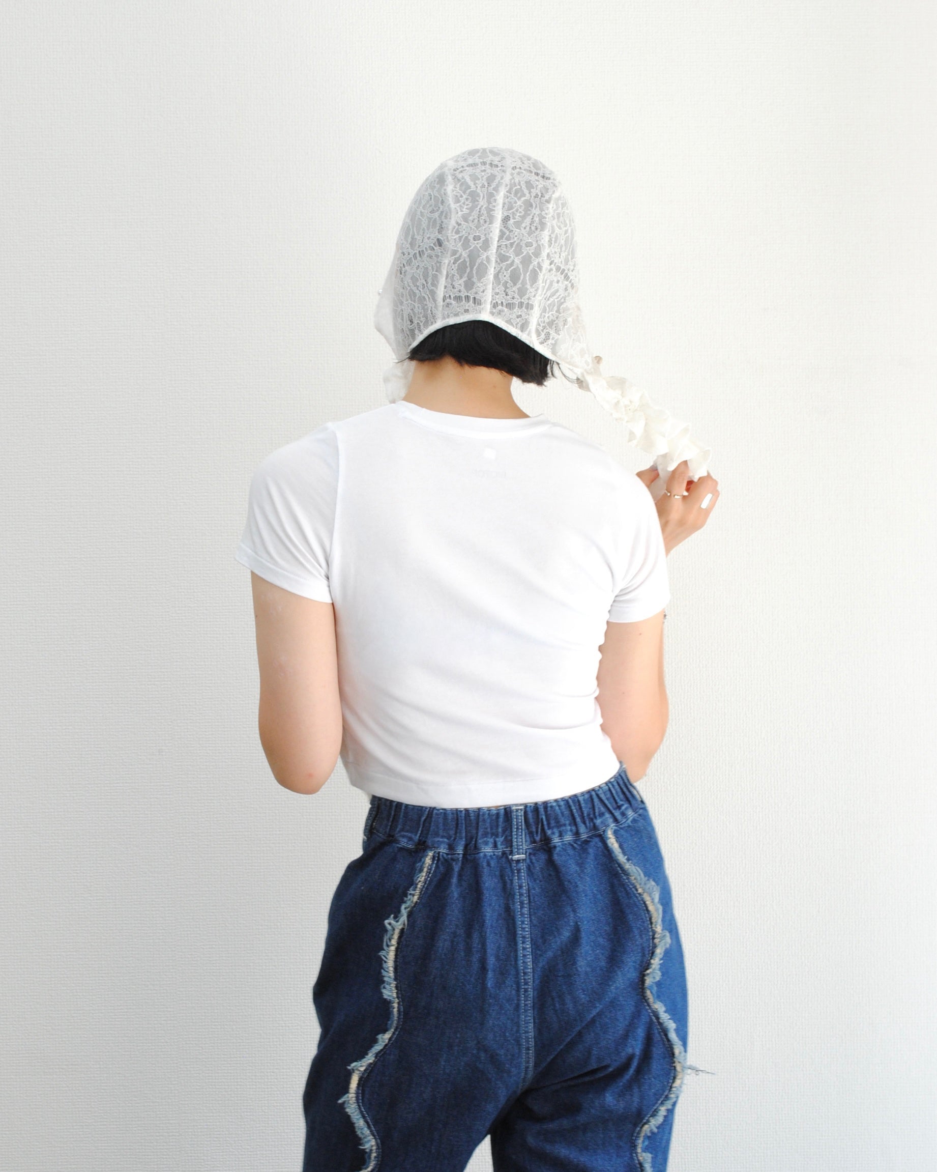 先染めシルクオーガンジーとレース素材を組み合わせた帽子。