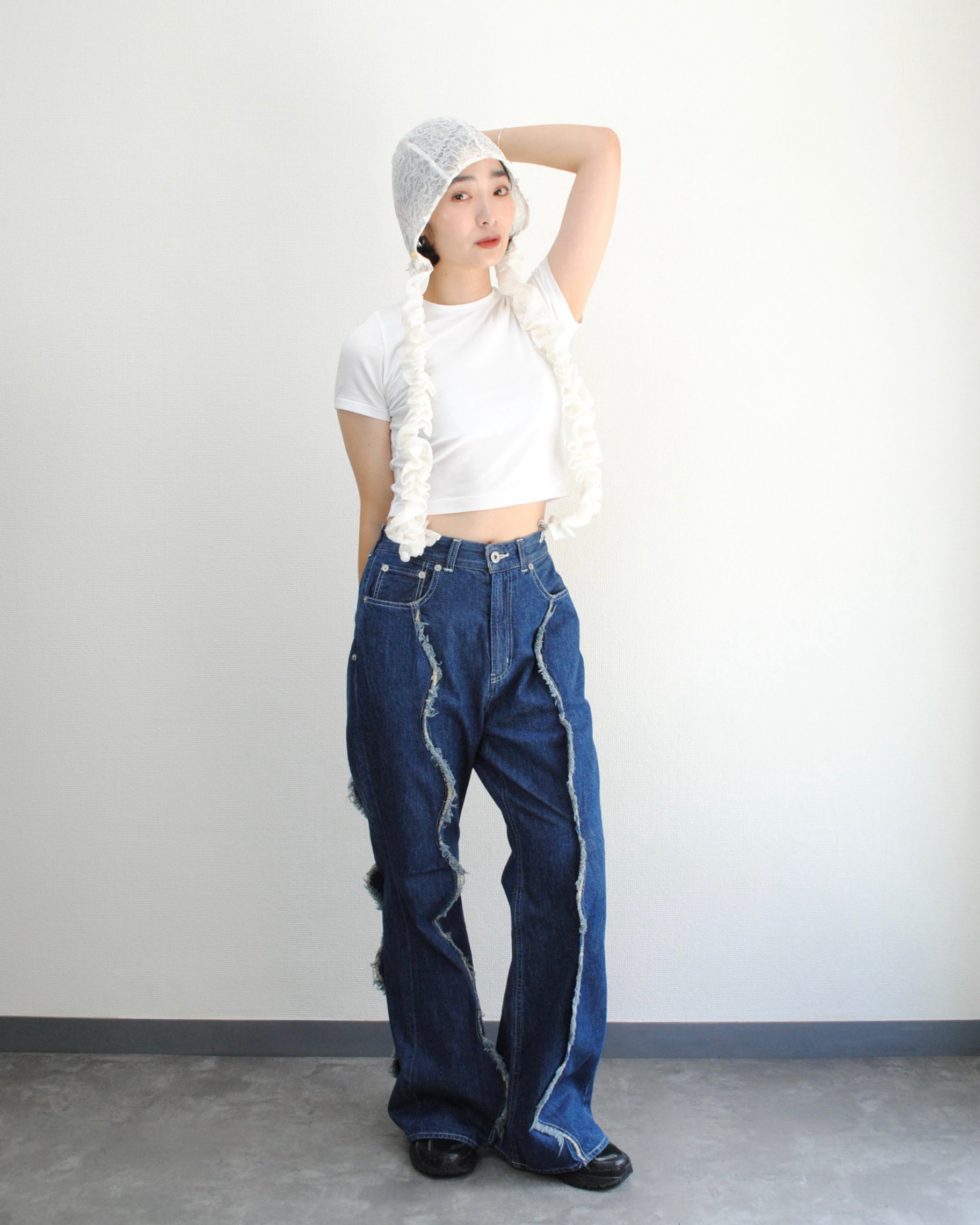 フードとして頭に被るのはもちろん、あえて被らずにクリップをパンツやスカートに付けて、フリルのサスペンダーとして使うのもおすすめ。