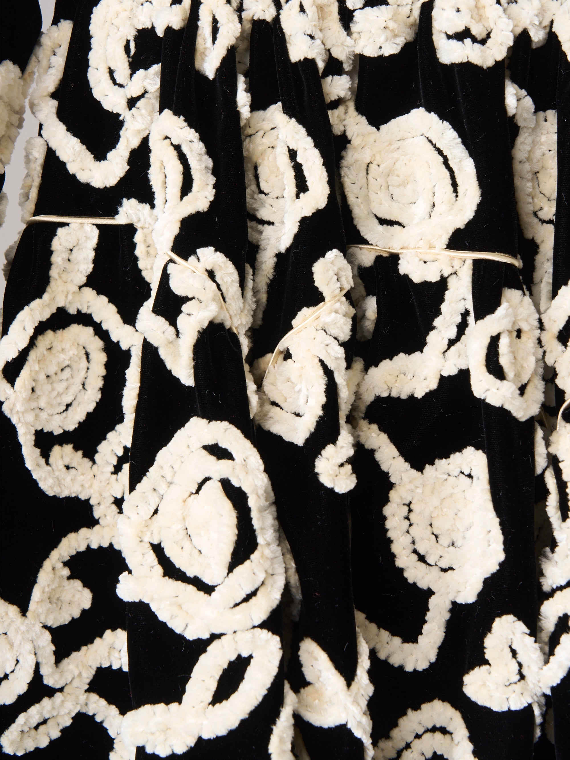 福井県北陸産地のベルベット生地を使用。なめらかな肌触りと、上品な深い光沢感のあるベルベットに、モール糸で花柄テープ刺繍を施しました。