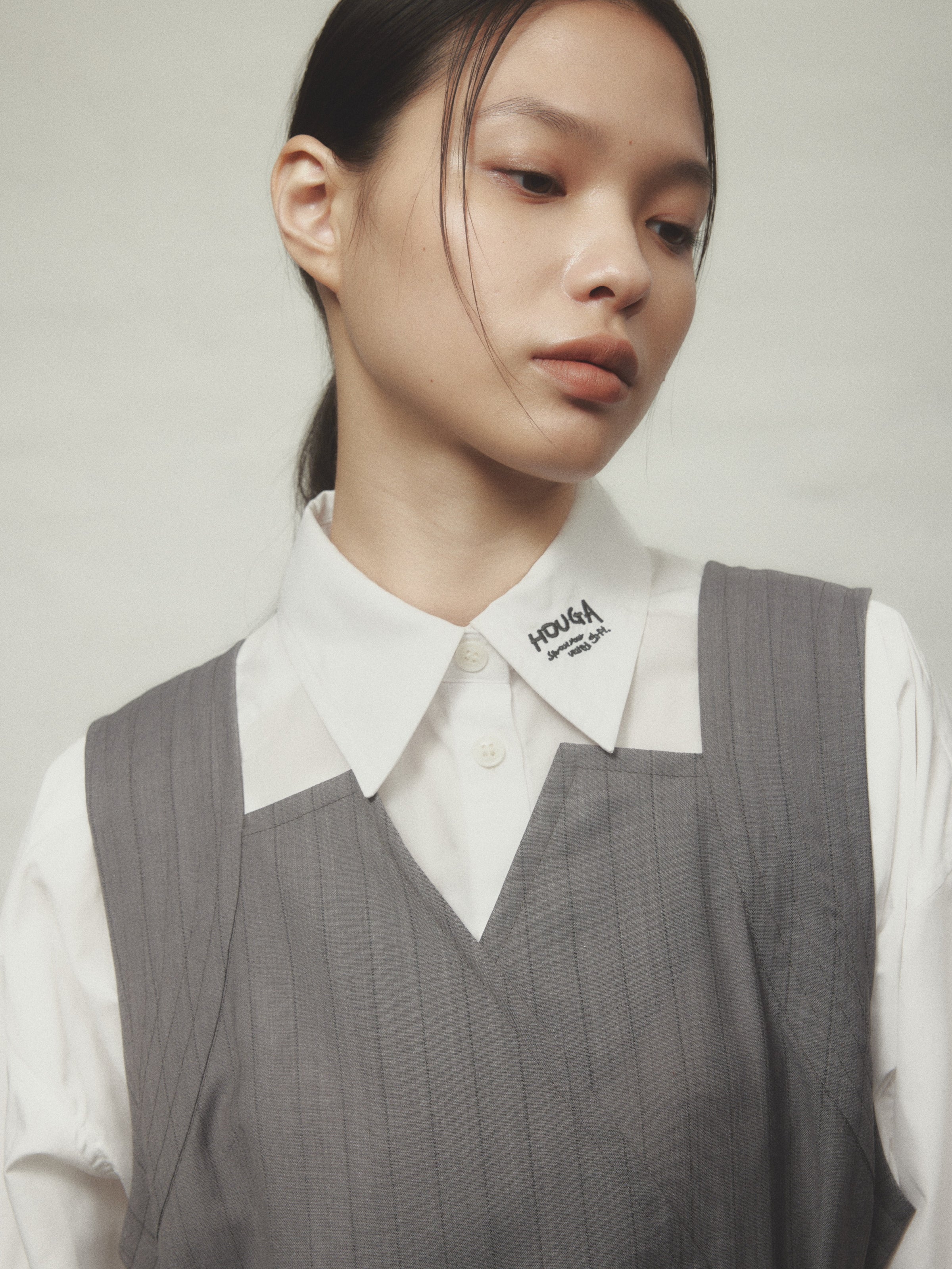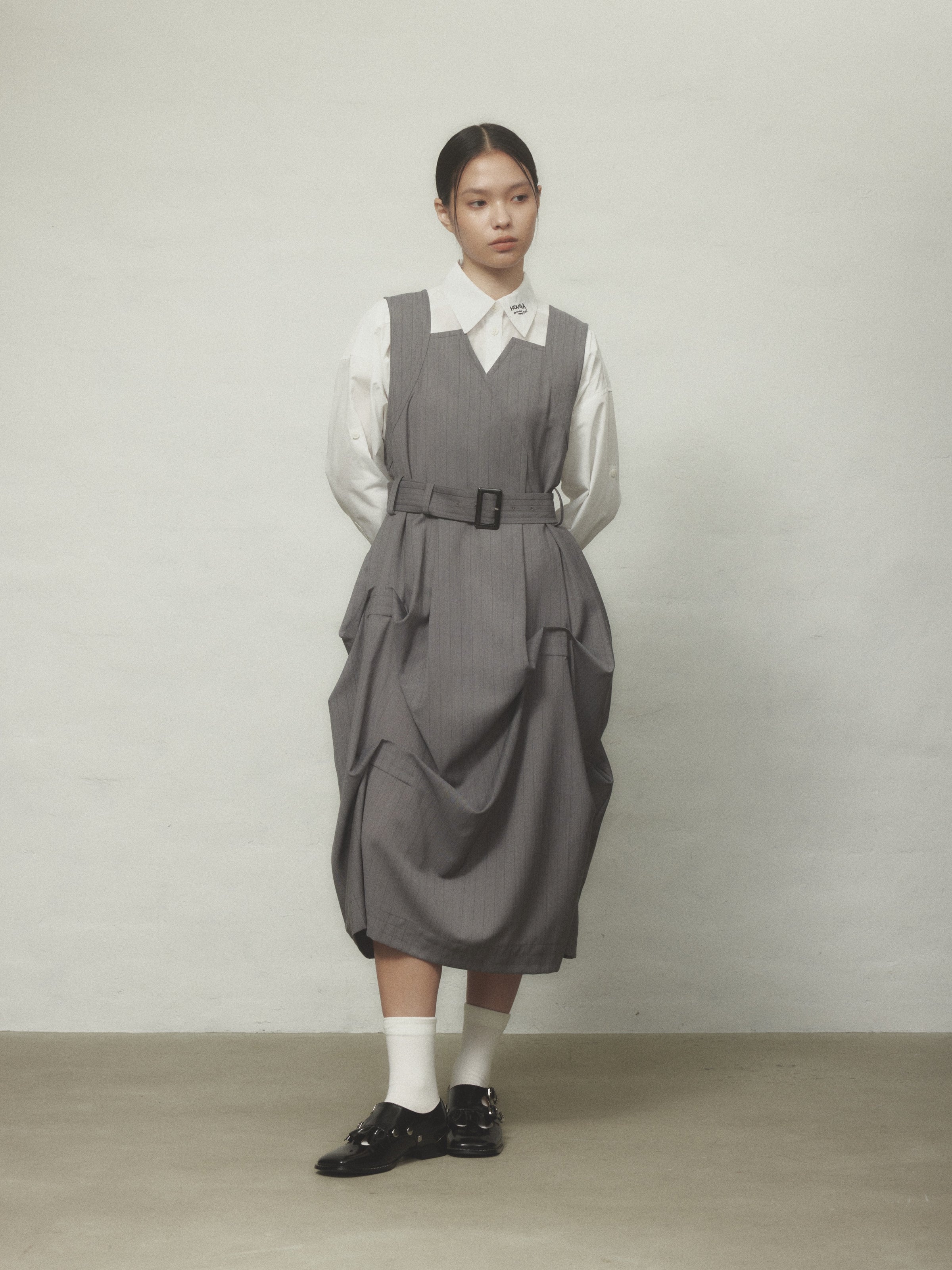 HOUGAらしい立体感と、着回しのしやすさを兼ね備えたアイコニックな1着です。