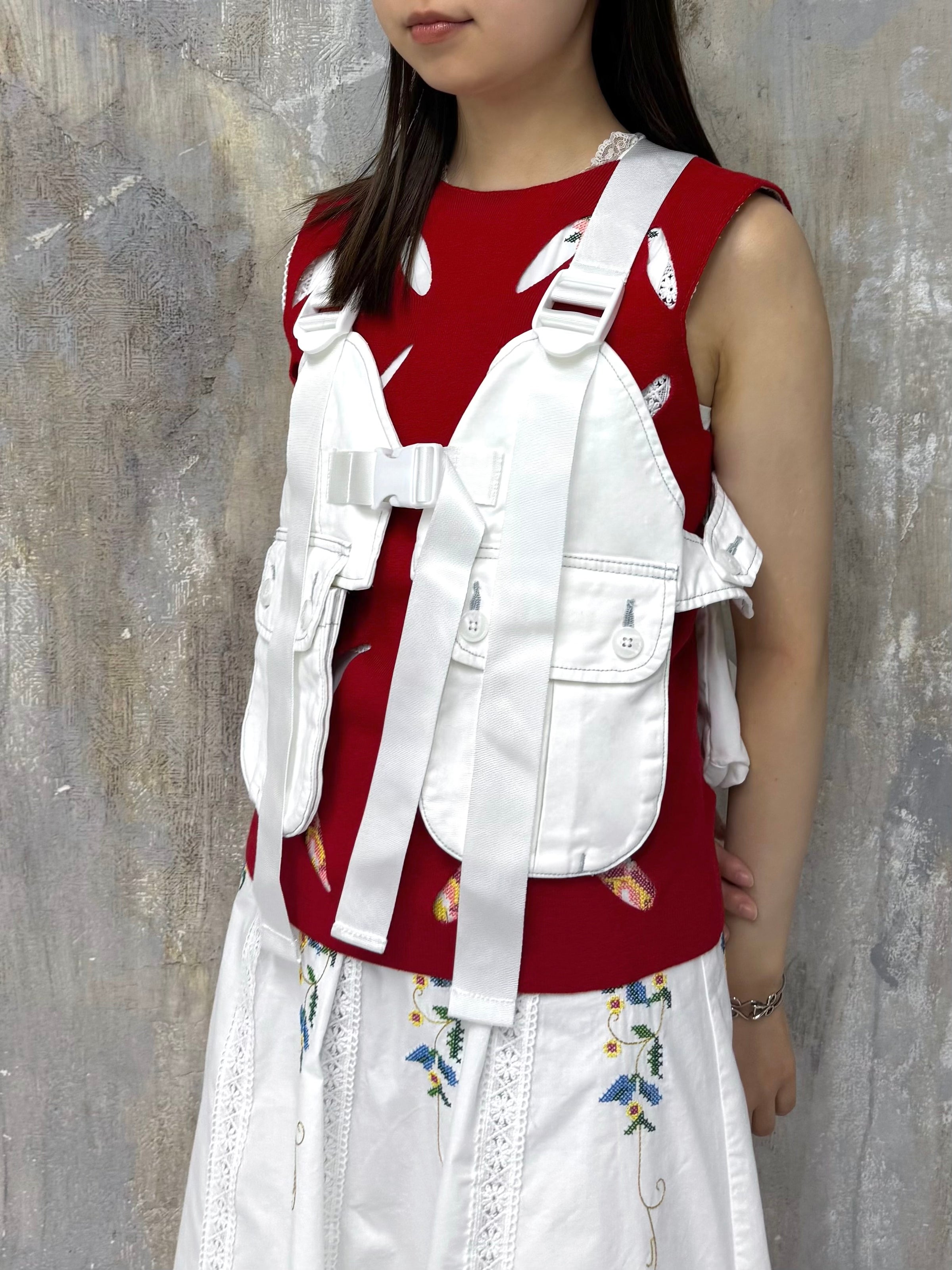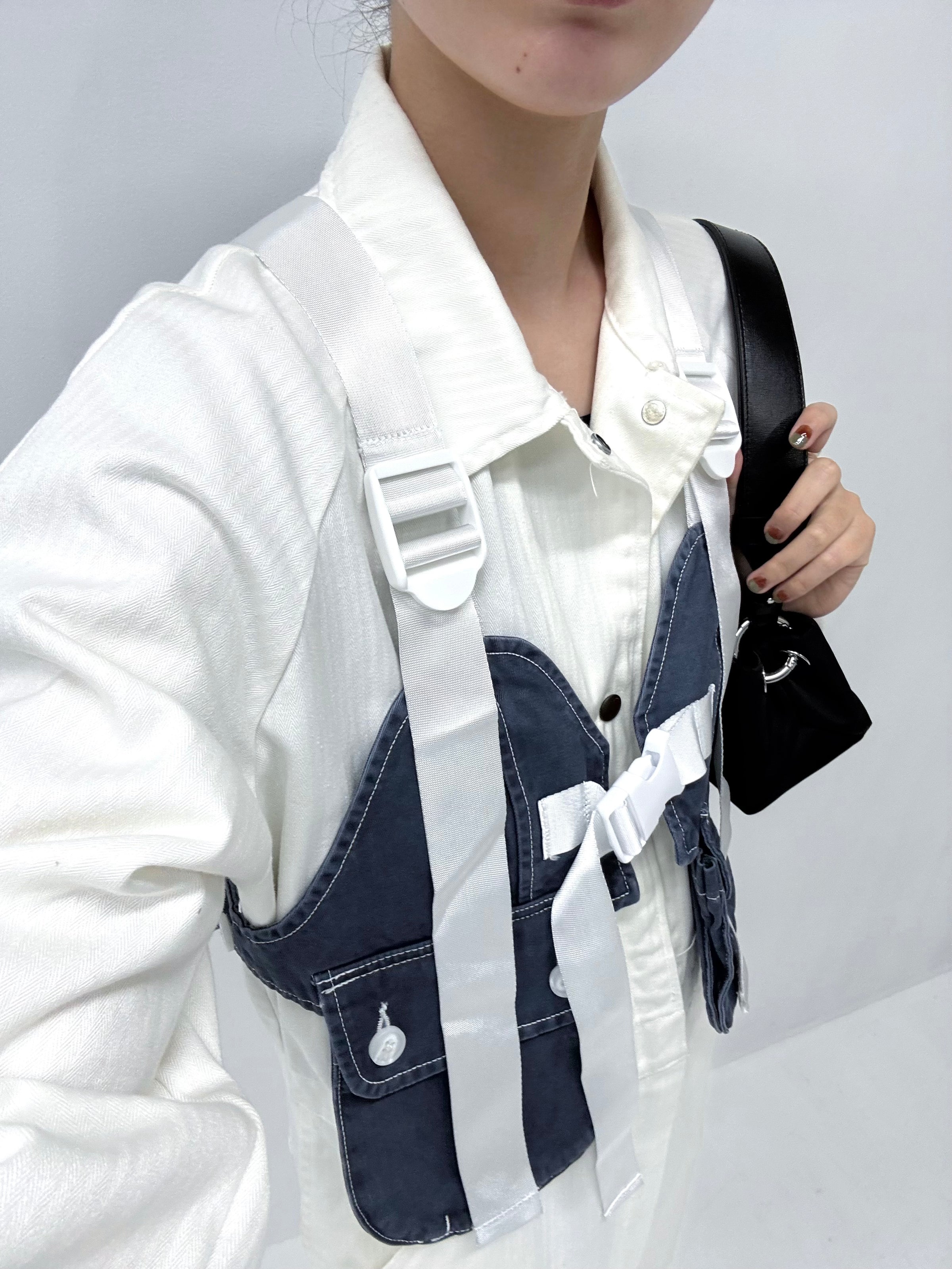 コットンツイル素材を使用し製品洗いを施した、アウトドアベスト。